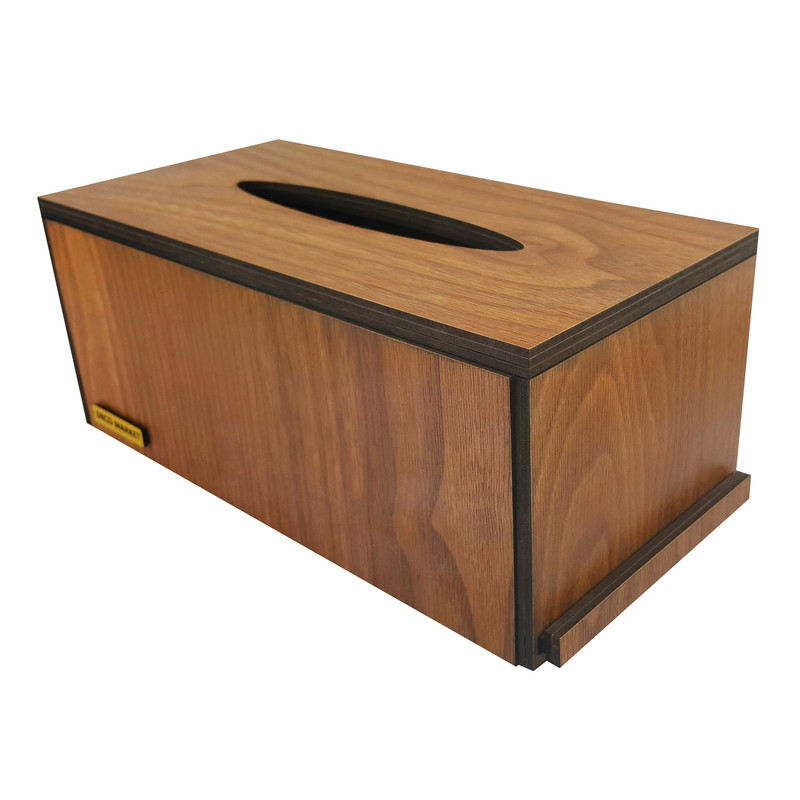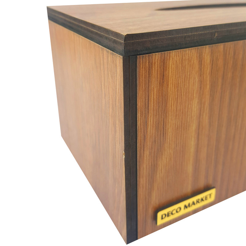 نگهدارنده و جای دستمال کاغذی دکو مارکت ساخته شده از چوب ام در اف به صورت 2 لایه برای استحکام بیشتر میباشد. از دیگر مزایای این محصول وجود درب کشویی برای سهولت در استفاده از آن میباشد.