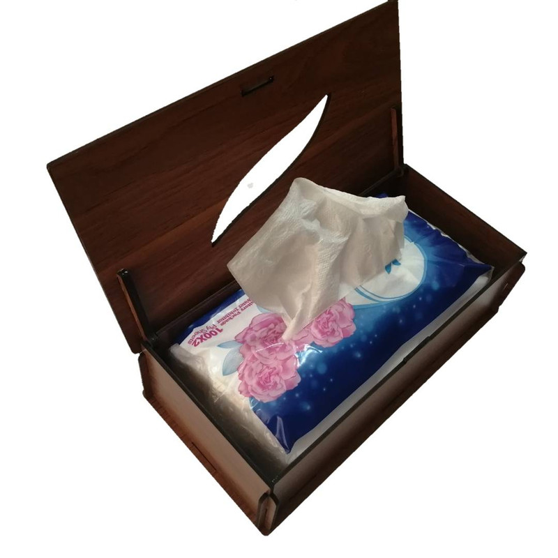 این جعبه دستمال کاغذی درب دار میباشد که در آن به صورت لولایی است و از بالا باز میشود، در این جعبه دستمال کاغذی 200برگ و کمتر جا میشود. طرح روی آن برش دار است و در مصارف خانگی،ادارات،مجالس،رستوران ها و تالارها کاربرد دارد.