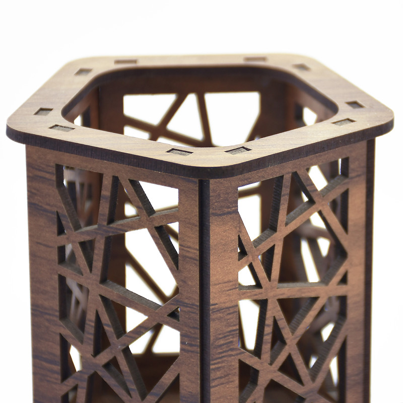 در نظر داشته باشیم برای افرادی که زمان زیادی را پشت میز کار یا مطالعه خود سپری می کنند جا قلمی وسیله ای مهم و کاربردی به شمار میرود. استفاده از وسایلی از جنس طبیعت مخصوصا چوبی کمک می کند تا فضایی بهتر و با نشاط تری داشته باشیم. جا قلمی طرح خطی ساخته شده از ورق ام دی اف به قطر 3 میلی متر میباشد.به علت ظاهری ساده ، این محصول برای استفاده در محیط کار و منزل مناسب است.