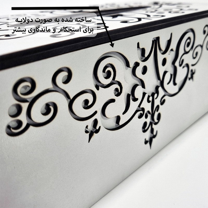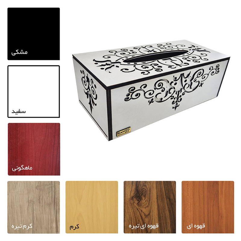 نگهدارنده دستمال کاغذی کد 001 با طراحي خاص و اختصاصي خود از محصولات پر طرفدار مجموعه رانزو بوده و همانند ديگر محصولات ما ويژگي هايي دارد که اين محصول را از ساير محصولات بازار متمايز ميکند.از جمله ويژگي های مهم آن همانطور که در تصاویر مشخص شده ميتوان به ساخت شدن قسمتهای مختلف این محصول بصورت دولایه برای استحکام و ماندگاری بیشتر اشاره کرد. درب کشویی زیر آن برای قرار دادن و جابجایی راحت دستمال و وجود طرح سنتی روی کار که جلوه بصری خاصی به این محصول میدهد از ديگر ويژگي هاي آن است.