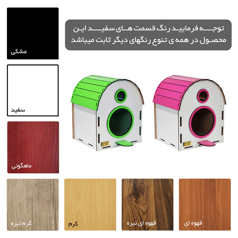 لانه پرنده رانزو گالری کد 005 در مجموعه رانزو گالری طراحی و تولید شده و با چوب مرغوب و روکش دار در رنگهاي مختلف ساخته شده است و همانند ديگر محصولات ما ويژگي هايي دارد که اين محصول را از ساير محصولات بازار متمايز ميکند.از جمله اين ويژگي ها ميتوان به سقف با قابليت جابجايي براي تميز کردن داخل لانه اشاره کرد.وجود لوگو اختصاصي رانزو گالري روي محصول و ساخت لانه بصورت دو رنگ که جذابيت بصري آنرا دوچندان ميکند از ديگر ويژگي هاي آن است.اين لانه مناسب پرنده هايي با سايز کوچک و متوسط از جمله طوطي برزيلي، قناري، مرغ عشق، فنچ، و ...ميباشد.براي پرنده هايي با سايز بزرگتر همچون عروس هلندي يا مرغ مينا ميتوانيد از ديگر محصولات رانزو گالري استفاده نماييد.