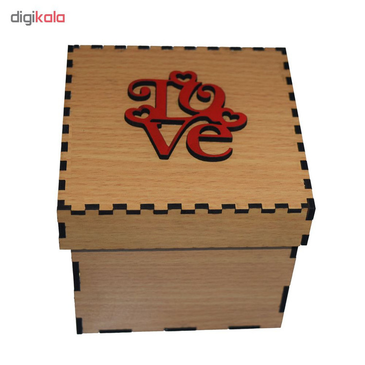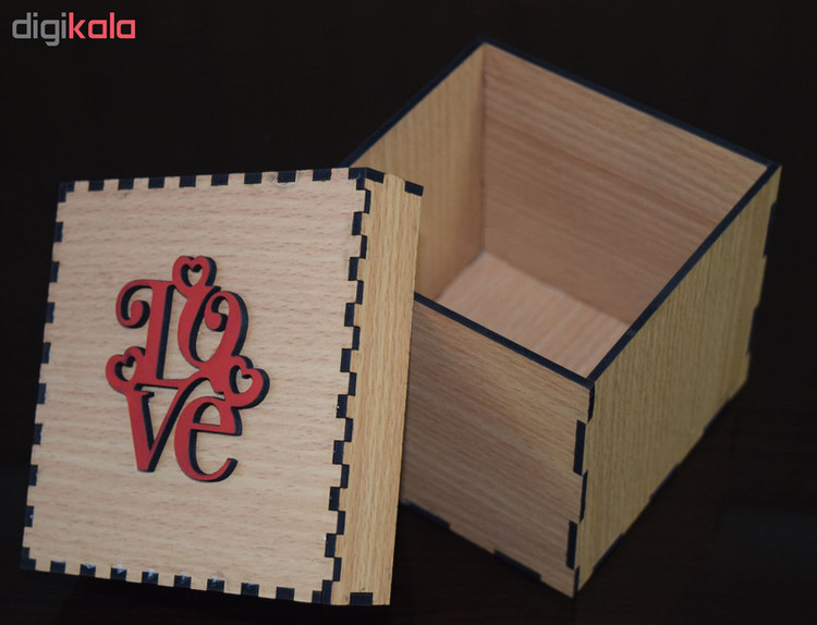 این محصول ساده و زیبا به صورت مدل هارد باکس دارای درب جدا از بدنه می باشد. محصول مناسب برای هدیه دادن و یا نگهدارنده و ارگانایزر وسایل می تواند مورد استفاده قرار گیرد. طرح روی درب این محصول نوشته فانتزی کلمه Love است. این محصول از چوب ام دی اف ساخته شده است.