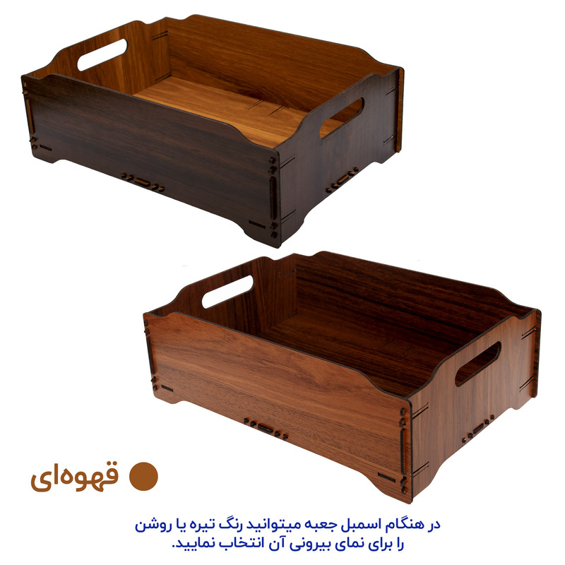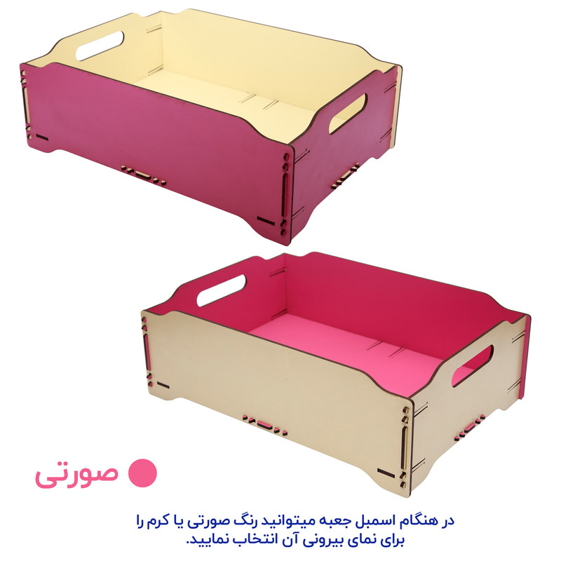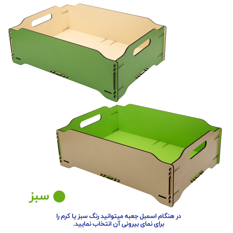 جعبه ارگانایزر زیبا «ZEEBA» مدل Panier یکی از وسایل لازم برای داشتن خانه ای منظم و مرتب است. اندازه مفید کف این جعبه چوبی 30 در 20 سانتی متر است که با 10سانتی متر ارتفاع دیواره های کناری آن یک نظم دهنده مناسب برای انواع اشیاء همچون وسایل آرایشی، وسایل خیاطی، لوازم التحریر، اسباب بازی، و... است. جنس این جعبه از چوب MDF بوده و در رنگبندی سفید (برای کابینت)، قهوهای (برای کمد و دراور)، سبز (برای اتاق کودک پسرانه) و صورتی (برای اتاق کودک دخترانه) عرضه شده است. یکی از امتیازات مهم این محصول دو رو بودن چوب آن است و لذا شما با خرید یک رنگ امکان استفاده از دو رنگ را دارید (سبز و کرم؛ صورتی و کرم؛ قهوهای روشن و تیره) و بنابر سلیقه خود میتوانید جعبه را سرهم کنید. برای آشنایی بهتر با این ویژگی آلبوم تصاویر محصول را مشاهده نمایید.