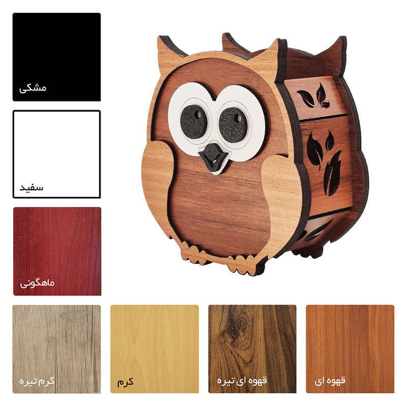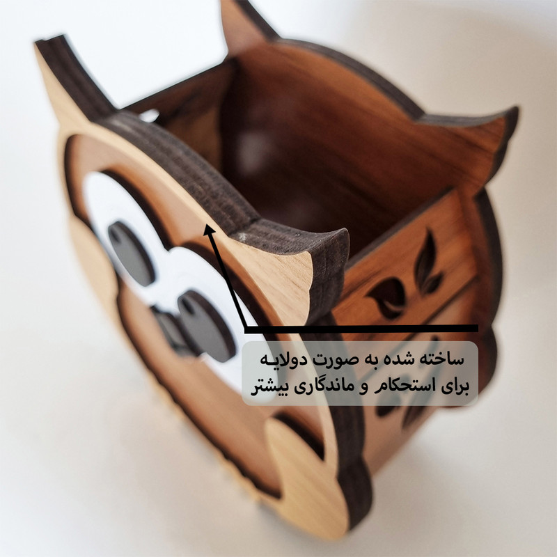 جامدادی رانزو گالری مدل جغد کد 013 در مجموعه رانزو گالری طراحی و تولید شده و با چوب مرغوب و روکش دار در رنگهاي مختلف ساخته شده است و مانند ديگر محصولات ما ويژگي هايي دارد که اين محصول را از ساير محصولات بازار متمايز ميکند.از جمله ويژگي هاي مهم آن همانطور که در تصاوير مشخص شده ميتوان به ساخت شدن قسمتهاي مختلف اين محصول بصورت دولايه براي استحکام و ماندگاري بيشتر اشاره کرد.وجود لوگو اختصاصي رانزو گالري روي محصول و تنوع رنگی در ساخت از ديگر ويژگي هاي آن است. این محصول علاوه بر کاربرد جامدادی یک محصول دکوری زیبا است که جلوه خاصی به اتاق کودکان و نوجوانان میدهد.