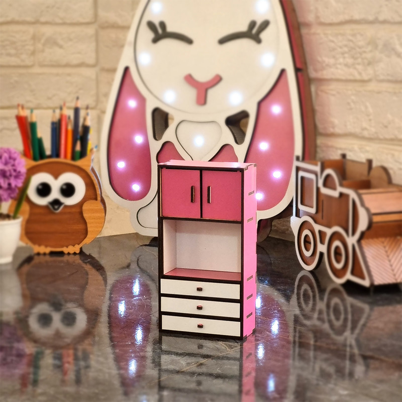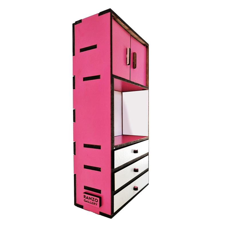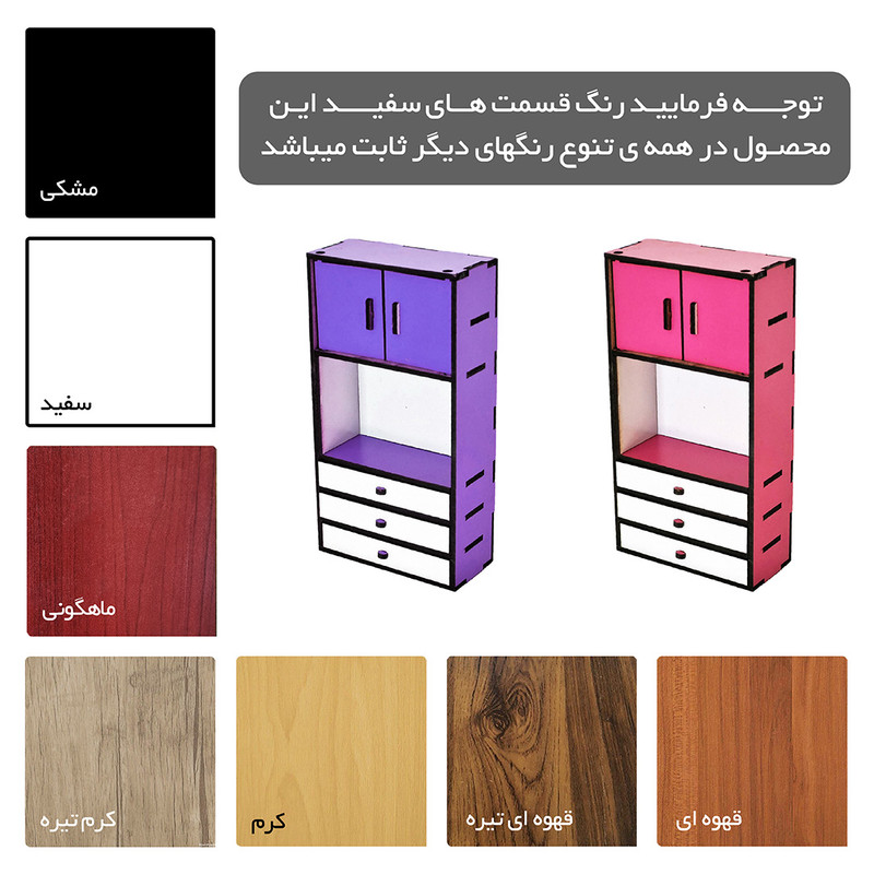 ماکت دکوری رانزو گالری مدل کمد سه کشو کد 0073 در مجموعه رانزو گالری طراحی و تولید شده و با چوب مرغوب و روکش دار در رنگهاي مختلف ساخته شده است و همانند ديگر محصولات ما ويژگي هايي دارد که اين محصول را از ساير محصولات بازار متمايز ميکند.از جمله ويژگي هاي مهم آن همانطور که در تصاوير مشخص شده ميتوان به ساخت شدن قسمتهاي مختلف اين محصول بصورت دولايه براي استحکام و ماندگاري بيشتر اشاره کرد.درب و کشوهایی با قابلیت باز و بسته شدن و وجود لوگو اختصاصي رانزو گالري روي محصول از ديگر ويژگي هاي آن است.اينگونه اسباب بازي ها از محبوبیت خاصي بين کودکان برخوردار ميباشند و باعث توسعه توانايي هاي حرکتی، افزايش خلاقيت و داستان سرايي در کودکان ميشود.این محصول يک هديه عالي براي کودکان بالاي سه سال و انتخابي عالي براي آنهايست که به اسباب بازي و ماکت های مینیاتوری و دکوری علاقه مند هستند.