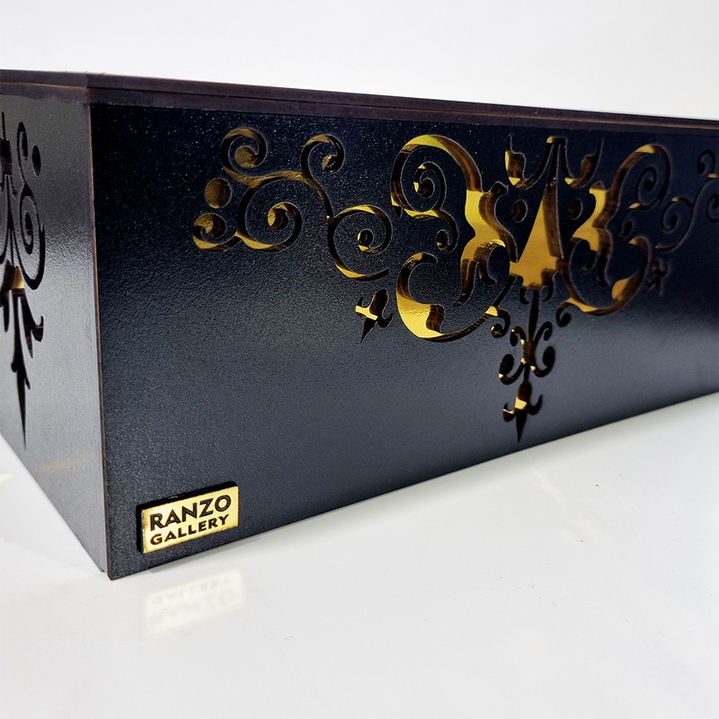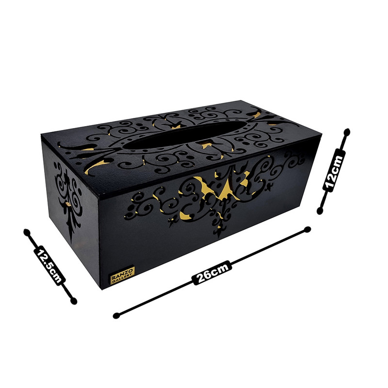 جعبه دستمال کاغذی رانزو گالری مدل رویال طلایی کد 02 با طراحي خاص و اختصاصي خود از محصولات پر طرفدار مجموعه رانزو بوده و همانند ديگر محصولات ما ويژگي هايي دارد که اين محصول را از ساير محصولات بازار متمايز ميکند.از جمله ويژگي های مهم آن همانطور که در تصاویر مشخص شده ميتوان به ساخت شدن قسمتهای مختلف این محصول بصورت دولایه برای استحکام و ماندگاری بیشتر اشاره کرد.وجود لوگو اختصاصي رانزو گالري روي محصول و درب کشویی زیر آن برای قرار دادن و جابجایی راحت دستمال و وجود قسمت های طلایی رنگ روی کار که جلوه بصری خاصی به این محصول میدهد که از ديگر ويژگي هاي آن است.