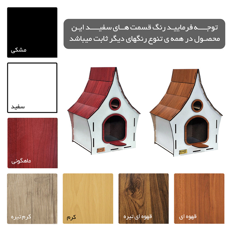 لانه پرنده با چوب مرغوب و روکش دار در رنگهاي مختلف ساخته شده است. از جمله اين ويژگي ها ميتوان به سقف با قابليت جابجايي براي تميز کردن داخل لانه اشاره کرد. از ديگر ويژگي هاي آن است.اين لانه مناسب پرنده هايي با سايز کوچک و متوسط از جمله طوطي برزيلي، قناري، مرغ عشق، فنچ، و ...ميباشد.