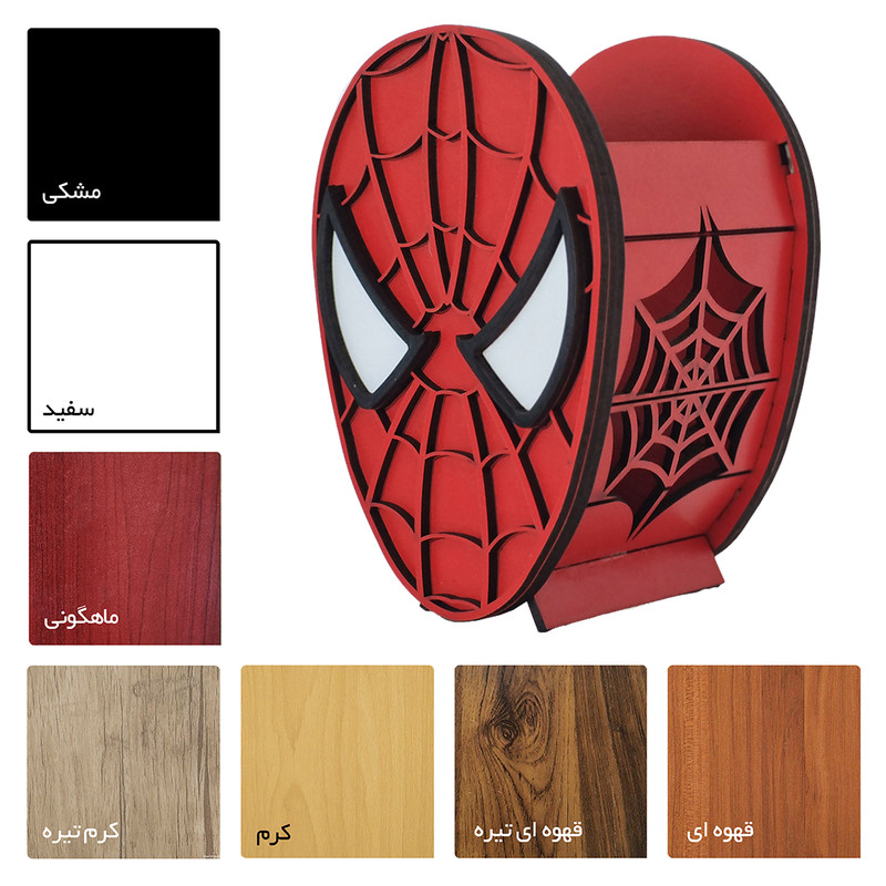 جامدادی رانزو گالری مدل اسپایدرمن کد 010 در مجموعه رانزو گالری طراحی و تولید شده و با چوب مرغوب و روکش دار در رنگهاي مختلف ساخته شده است و مانند ديگر محصولات ما ويژگي هايي دارد که اين محصول را از ساير محصولات بازار متمايز ميکند.از جمله ويژگي هاي مهم آن همانطور که در تصاوير مشخص شده ميتوان به ساخت شدن قسمتهاي مختلف اين محصول بصورت دولايه براي استحکام و ماندگاري بيشتر اشاره کرد.وجود لوگو اختصاصي رانزو گالري روي محصول و تنوع رنگی در ساخت از ديگر ويژگي هاي آن است. این محصول علاوه بر کاربرد جامدادی یک محصول دکوری زیبا است که جلوه خاصی به اتاق کودکان و نوجوانان میدهد.