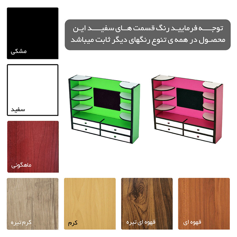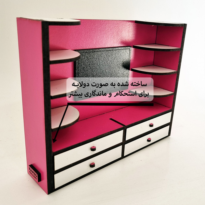 ماکت دکوری رانزو گالری مدل tv room کد 0068 در مجموعه رانزو گالری طراحی و تولید شده و با چوب مرغوب و روکش دار در رنگهاي مختلف ساخته شده است و مانند ديگر محصولات ما ويژگي هايي دارد که اين محصول را از ساير محصولات بازار متمايز ميکند.از جمله ويژگي هاي مهم آن همانطور که در تصاوير مشخص شده ميتوان به ساخت شدن قسمتهاي مختلف اين محصول بصورت دولايه براي استحکام و ماندگاري بيشتر اشاره کرد.درب و کشوهایی با قابلیت باز و بسته شدن و وجود لوگو اختصاصي رانزو گالري روي محصول از ديگر ويژگي هاي آن است. اينگونه اسباب بازي ها از محبوبیت خاصي بين کودکان برخوردار ميباشند و باعث توسعه توانايي هاي حرکتی، افزايش خلاقيت و داستان سرايي در کودکان ميشود.این محصول يک هديه عالي براي کودکان بالاي سه سال و انتخابي عالي براي آنهايست که به اسباب بازي و ماکت های مینیاتوری و دکوری علاقه مند ميشود.این محصول يک هديه عالي براي کودکان بالاي سه سال و انتخابي عالي براي آنهايست که به اسباب بازي و ماکت های مینیاتوری و دکوری علاقه مند هستند.